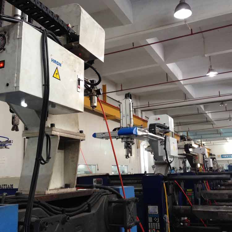 浩能(HAON)牌机械手,配合进口和国产的各种品牌注塑机台使用,连接工业流水线(输送带),来完全实现生产自动化,为建设无人工厂提供坚实可靠的设备,降低风险,提高生产!