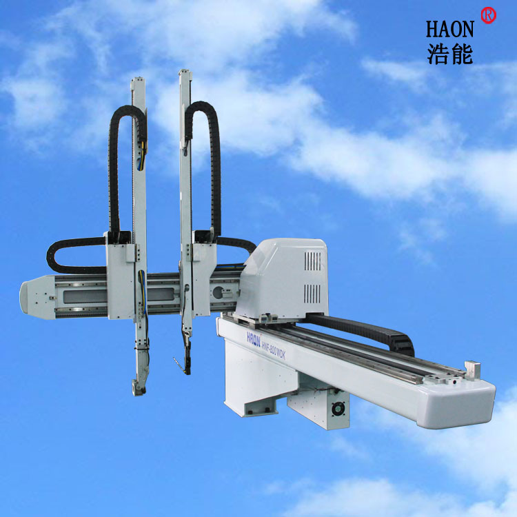五轴伺服机械手HNF800WDK,在注塑机械手里属中型机械手,浩能(HAON)牌是做了12年之久的一个品牌,集设计、生产、销售及售后后服务为一体的厂家,浩能12年始终如一日牢记客户至上的宗旨,致力于高质量产品及高质量的售后服务,赢得同仁一致好评。