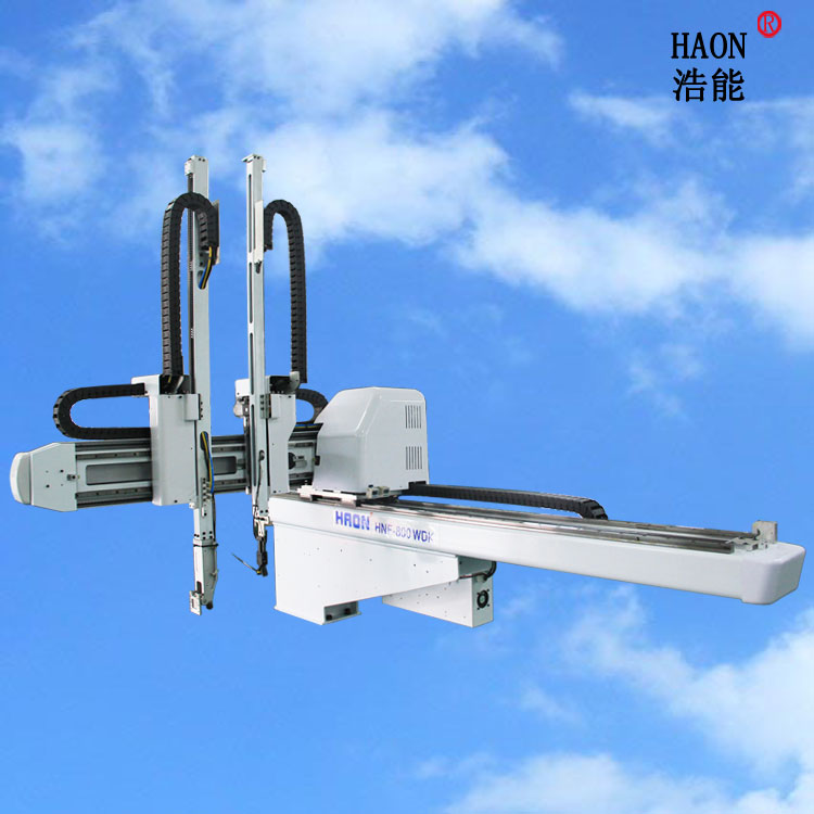 五轴伺服机械手HNF900WDK,在注塑机械手里属中型机械手,浩能(HAON)牌是做了12年之久的一个品牌,集设计、生产、销售及售后后服务为一体的厂家,浩能12年始终如一日牢记客户至上的宗旨,致力于高质量产品及高质量的售后服务,赢得同仁一致好评。